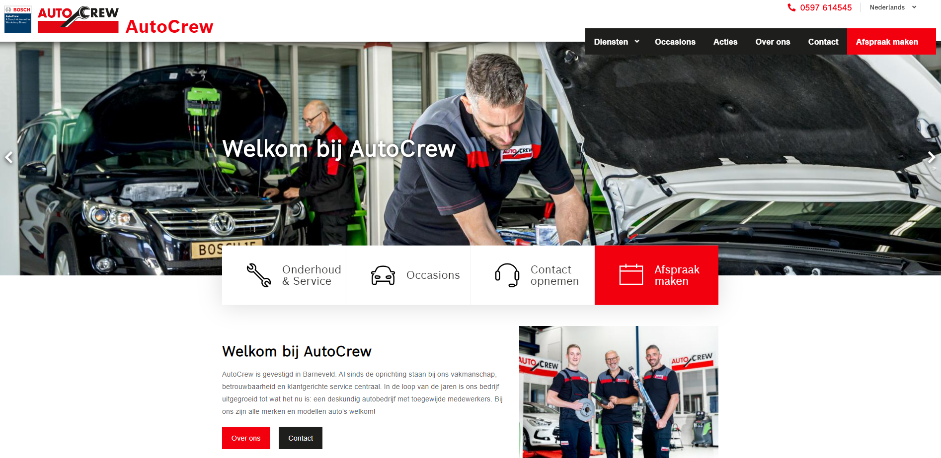 Alle partners van AutoCrew en Bosch Car Service in de Benelux krijgen in de komende maanden een gloednieuwe deelnemerswebsite. In totaal worden er zo’n 900 nieuwe websites opgeleverd. Alle AutoCrew-garages in de Benelux hebben nu een uniforme uitstraling, en dat geldt ook voor de websites van de Bosch Car Service-leden. Ondanks de uniforme uitstraling blijft er voor de AutoCrew- en Bosch Car Service-bedrijven de nodige ruimte om hun website te personaliseren.